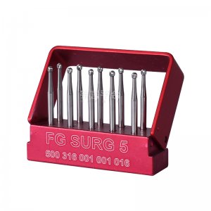 【使用方法】使用前應對車針進行清洗(毛刷沾洗潔精刷洗車針表面,清水沖洗二遍,純水沖洗二遍),然后進行嚴格的高壓蒸汽滅菌處理(在壓力蒸氣滅菌器內進行,壓力0.1Mpa,溫度121~126℃,保持時間30分鐘)。安裝在合格的牙科手機上使之旋轉用于鉆削牙齒,使用前應檢查是否夾持牢固。