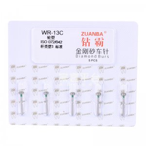 【結構及組成】由車針柄和工作部分組成。其中車針柄由不銹鋼材料制成,工作部分鍍有金剛石顆粒。